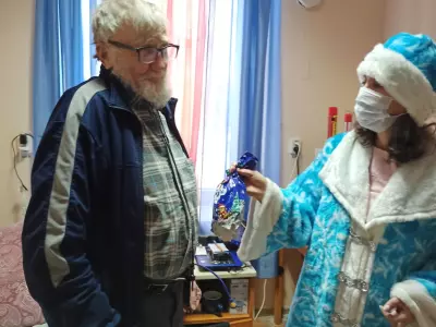 31 декабря сотрудники дома-интерната в костюмах Деда Мороза и Снегурочки подарили подарки проживающим дома-интерната. Постояльцы были рады визиту, рассказывали свои истории из детства, улыбались и полностью прониклись наступлением праздника.