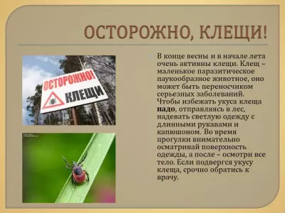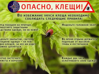 - В случае присасывания клеща, обратитесь за медицинской помощью.