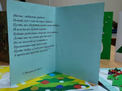 Воспитанники группы №1 МБДОУ детского сада №12 г. Вязьмы, участники волонтерского движения "Дети доброй воли" порадовали пожилых дедушек и бабушек СОГБУ "Вяземского ДИПИ" теплыми поздравлениями в виде открыток, подарили новогодние украшения для оформления комнат к празднику Нового года.