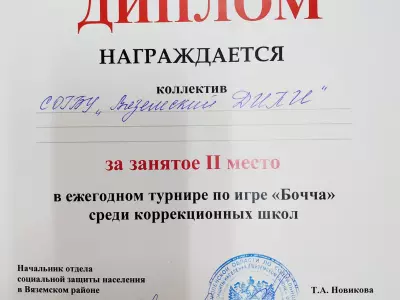 19 апреля 2023 года в городе Вязьма состоялся ежегодный турнир по игре «Бочча», посвященный дню космонавтики. В турнире приняла участие команда СОГБУ «Вяземский ДИПИ» в составе: Воронкова Надежда, Жулепова Лейла, Куликова Жанна и заняла 2 место.