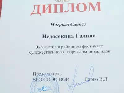 18 мая 2023 Недосекина Галина Аркадьевна, проживающая СОГБУ «Вяземский ДИПИ», приняла участие в районном фестивале художественного творчества инвалидов. Фестиваль состоялся в культурно-выстовочном центре г. Вязьма. Галина Аркадьевна читала стихотворение Андрея Дементьева «Мир держится на добрых людях».