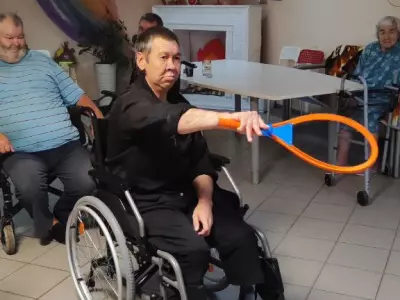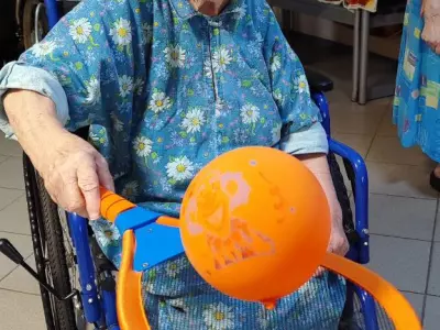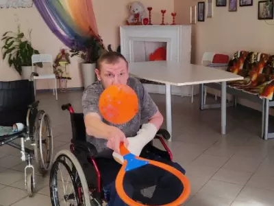 В Вяземском доме-интернате даже в дождливую погоду можно найти интересное занятие. Бадминтон с воздушным шариком в кругу друзей позволяет не только поддерживать координацию, но и улучшает настроение.