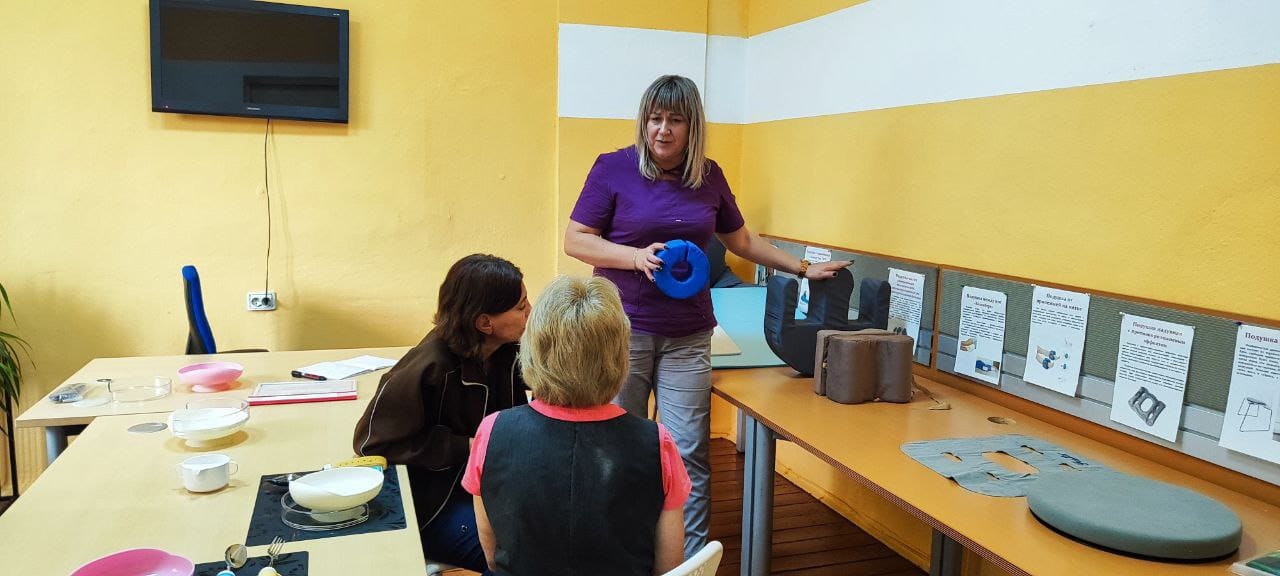 В СОГБУ «Вяземский ДИПИ» регулярно проводятся обучающие лекции для младшего и среднего персонала, в том числе вновь принимаемых на рабочее место, по уходу за маломобильными и немобильными гражданами. Обучение включает в себя теоретические и практические занятия. В процессе занятий персонал изучает правила ухода, питания и кормления, использование средств малой реабилитации, использование современных средств ухода, проведение профилактических мероприятий, обучение технике перемещения и многое другое. Учебный кабинет оснащен специализированным оборудованием и приспособлениями с помощью которых обучают, как правильно и безопасно осуществлять все эти манипуляции и при этом не навредить себе и человеку с ограниченным состоянием здоровья.