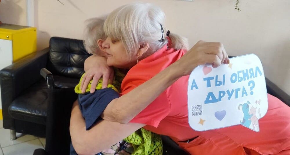 В Международный день объятий в Вяземском доме-интернате прошла акция «Поделись душевным теплом». И если вы думаете, что этот праздник не имеет отношения к медицине и здоровью, то вы глубоко ошибаетесь. Дружелюбные объятия повышают иммунитет, стимулируют центральную нервную систему, повышают в крови уровень гемоглобина, а также гормона окситоцина, вызывающего благожелательное расположение к другим людям.