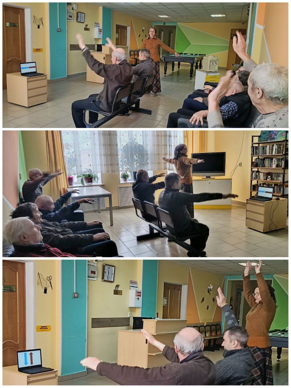 В Вяземском доме-интернате под руководством психолога проходят регулярные занятия по нейрогимнастике для всех желающих. Эти полезные и, на первый взгляд, простые упражнения не так-то легко с ходу выполнить, требуется концентрация внимания и внутренняя собранность. Упражнения выполняются в заданном временном режиме и под музыку, что придает занятию настроение и определенный спортивный кураж.