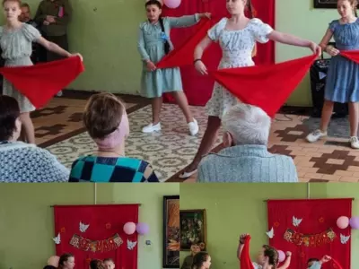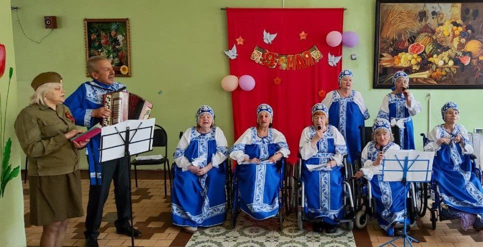 Большой праздничный концерт, посвященный 80-летию Победы, прошел в Вяземском доме-интернате. В концерте приняли участие учащиеся СОШ № 8 г. Вязьмы, сотрудники и проживающие дома-интерната. С праздником Великой Победы всех присутствующих поздравил настоятель церкви Сампсона Странноприимца отец Дмитрий. На мероприятии звучали стихи и песни, ребята исполняли танцы под любимые всеми мелодии военных лет. Зал с удовольствием подпевал песни, которые исполняли участницы вокальной группы «Второе дыхание».