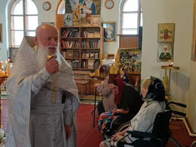 В этот день проживающие Вяземского дома-интерната для престарелых и инвалидов побывали на праздничном богослужении в храме Сампсона Странноприимца. Службу проводил настоятель церкви отец Дмитрий, который окропил водой верующих и освятил яблоки. Затем праздник продолжился музыкально-литературной викториной, которая проходила уже в доме – интернате. Все желающие могли принять в ней участие и получить сладкие призы.
