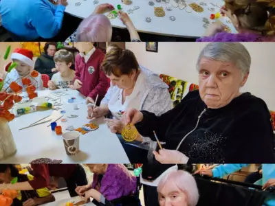 Вот и сегодня наши друзья подарили жителям дома-интерната предновогодний карнавал - яркий и шумный, веселый и задорный, с добрыми шутками и звонким смехом, шарами и главными новогодними героями: Дедом Морозом и Снегурочкой. А на мастер-классе вместе с детьми все желающие смогли расписать деревянные елочные игрушки.