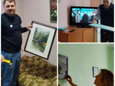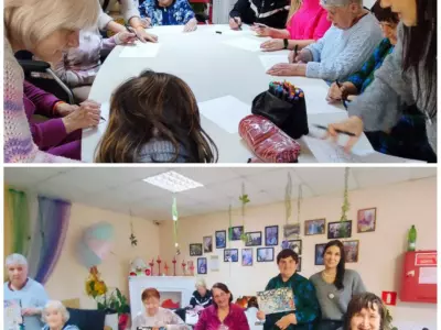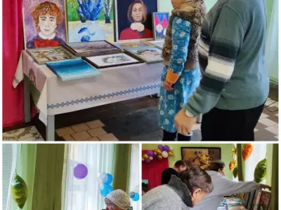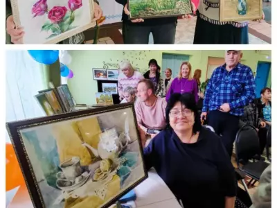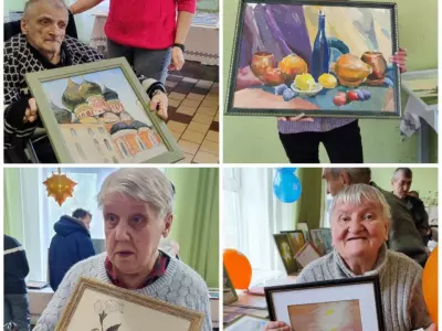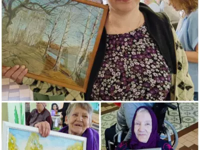 На этот раз они были не одни. Праздник для проживающих с прекрасным сюрпризом они подготовили совместно с директором автономного некоммерческого объединения «Душа с душою говорит» Алёной Савюк. Душевные и зажигательные песни сопровождала прекрасная выставка картин, которую привезла Алёна. Но проживающих ждал настоящий сюрприз, когда после концерта наши друзья предложили всем присутствующим выбрать себе в подарок понравившуюся картину. Сколько было удовольствия и радости при выборе картины. А когда эти подарки заняли достойное место на стене в комнате, то удовольствие получили все: и жители нашего дома, и наши друзья. Завершилась встреча интересным мастер- классом для всех желающих.