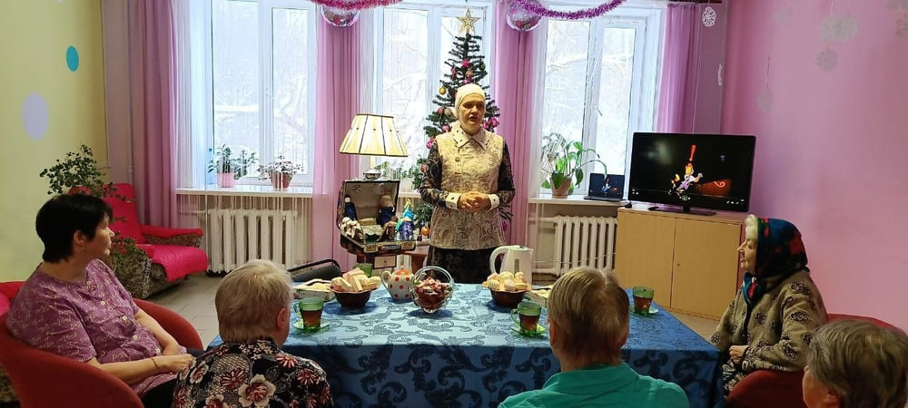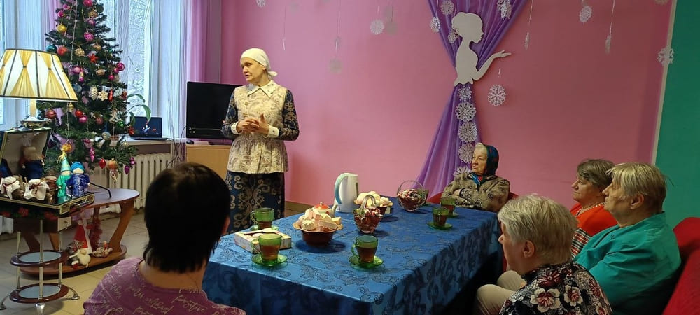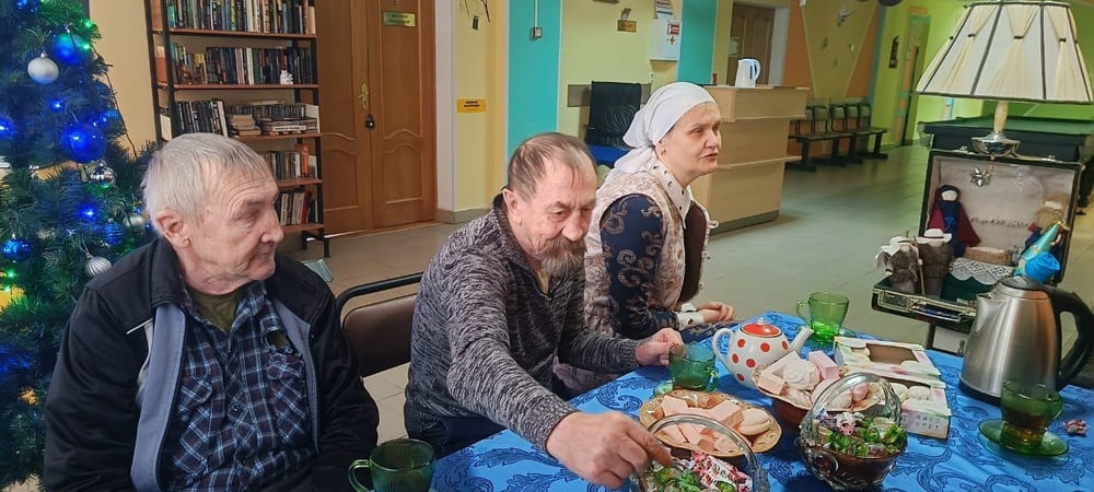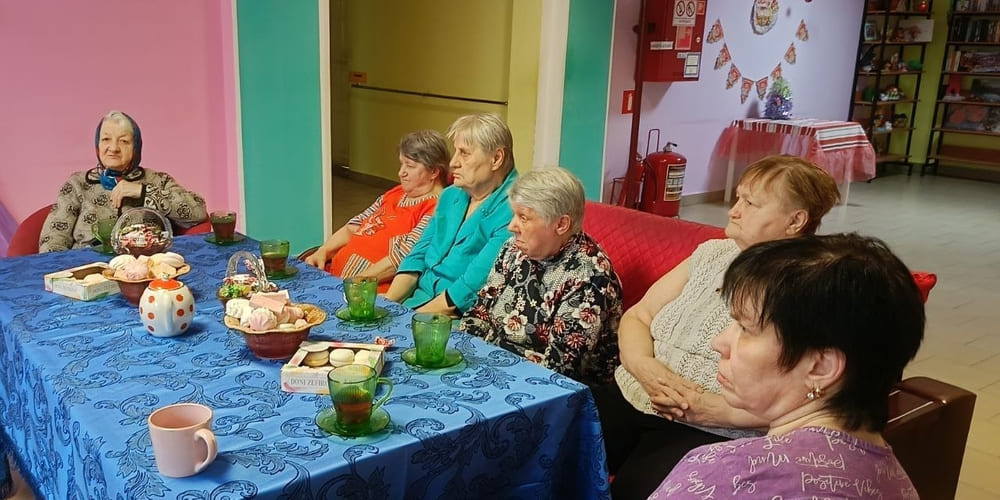 Жители Вяземского дома-интерната с большим удовольствием откликнулись на предложение психолога Фатовой Елены Владимировны и старшей медицинской сестры Шипарёвой Анны Александровны поговорить по душам за чашкой чая «о сокровенном».