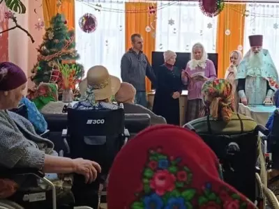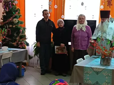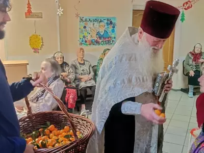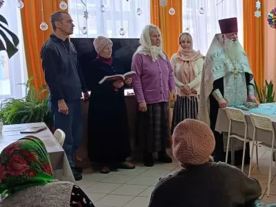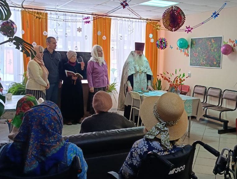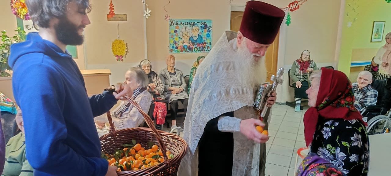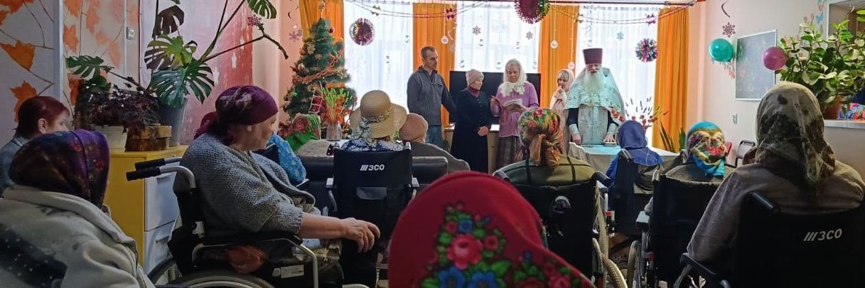 С Рождеством Христовым поздравил жителей Вяземского дома-интерната настоятель церкви Сампсона Странноприимца отец Дмитрий. Настоятель отслужил молебен и рассказал о празднике, посвященном пришествию в мир Спасителя, певчие исполнили народные колядки и рождественские песнопения.
