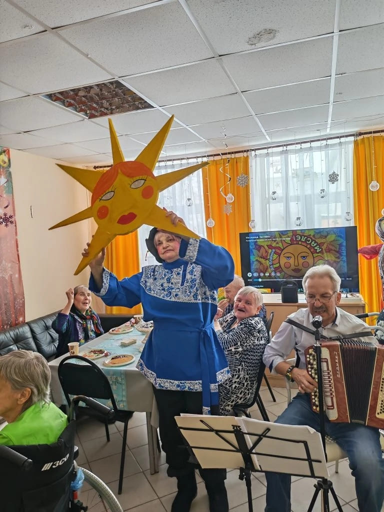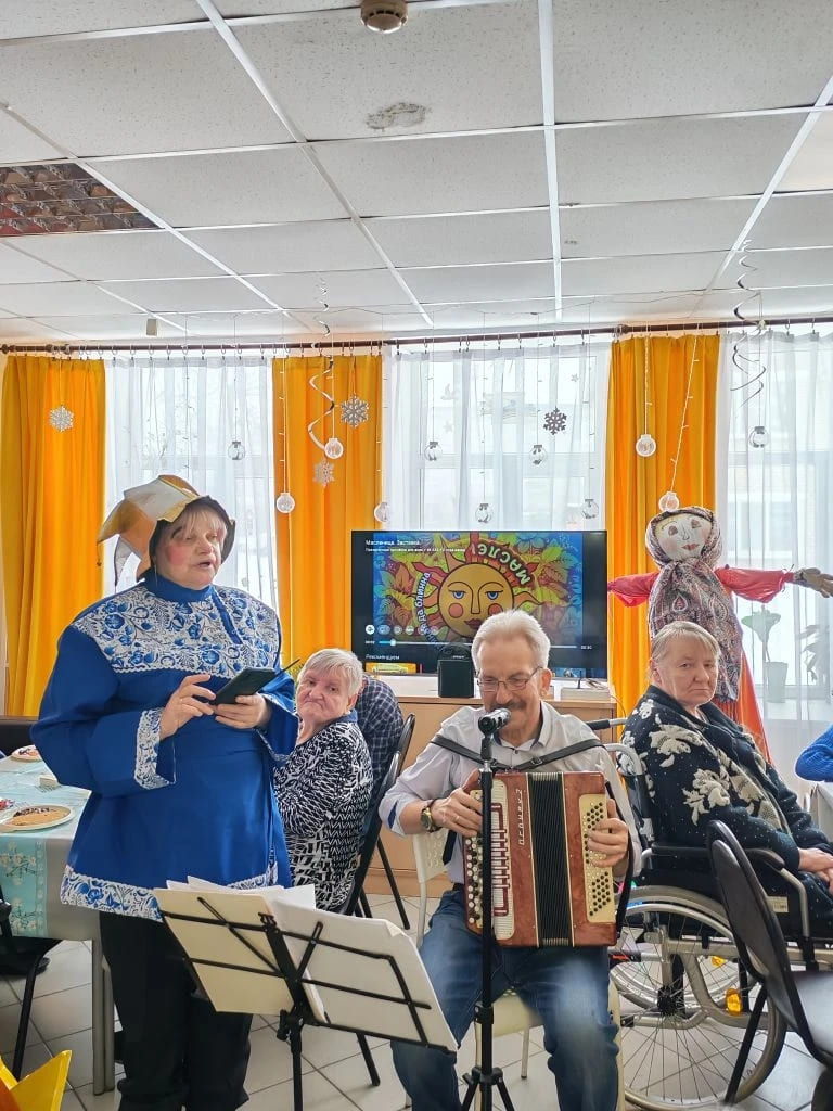 Четвёртый день Масленицы имеет несколько названий: «Разгуляй», «Широкий четверг» или «Коляда масленая». В этот день в Вяземском доме-интернате прошло замечательное развлекательное мероприятие «Масленица идёт, блин да мёд несёт». Песни, частушки и шутки-прибаутки наших ведущих никого не оставили равнодушными. Проживающие, каждый столик, выбирали любимые песни и под музыкальное сопровождение нашего баяниста с удовольствием их исполняли. Считается, что шумом, гамом, удалыми и задорными песнями и частушками люди будят весну, заряжают своей энергией природу и помогают прогнать зиму.
